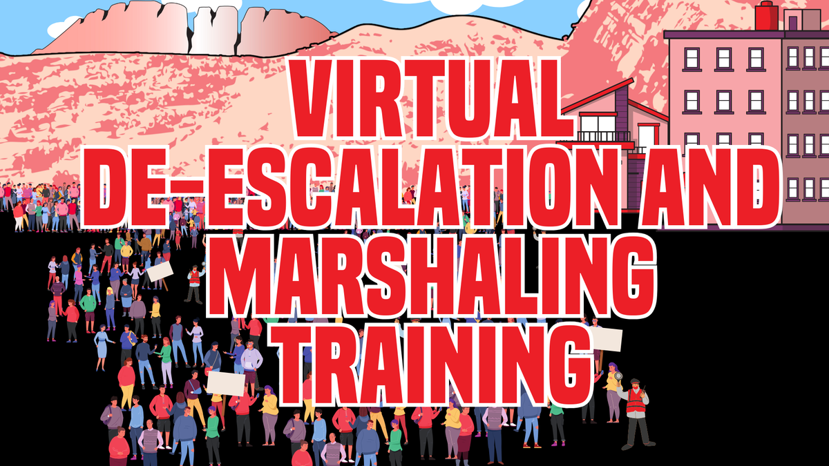 Join us online for a virtual De-Escalation and Marshaling Training. We’ll cover practical tools for calming tense situations, supporting group safety, and responding if things escalate. Each session introduces new material while reviewing core skills to help build confidence and retention over time,